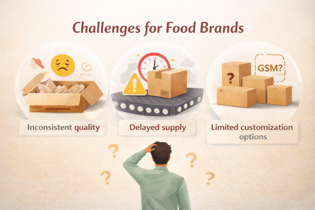 Food brands have to check many common challenges as they get inconsistent quality, delayed supply and limited customization options in Sustainable packaging solutions India. Here, we’ll discuss them in detail-