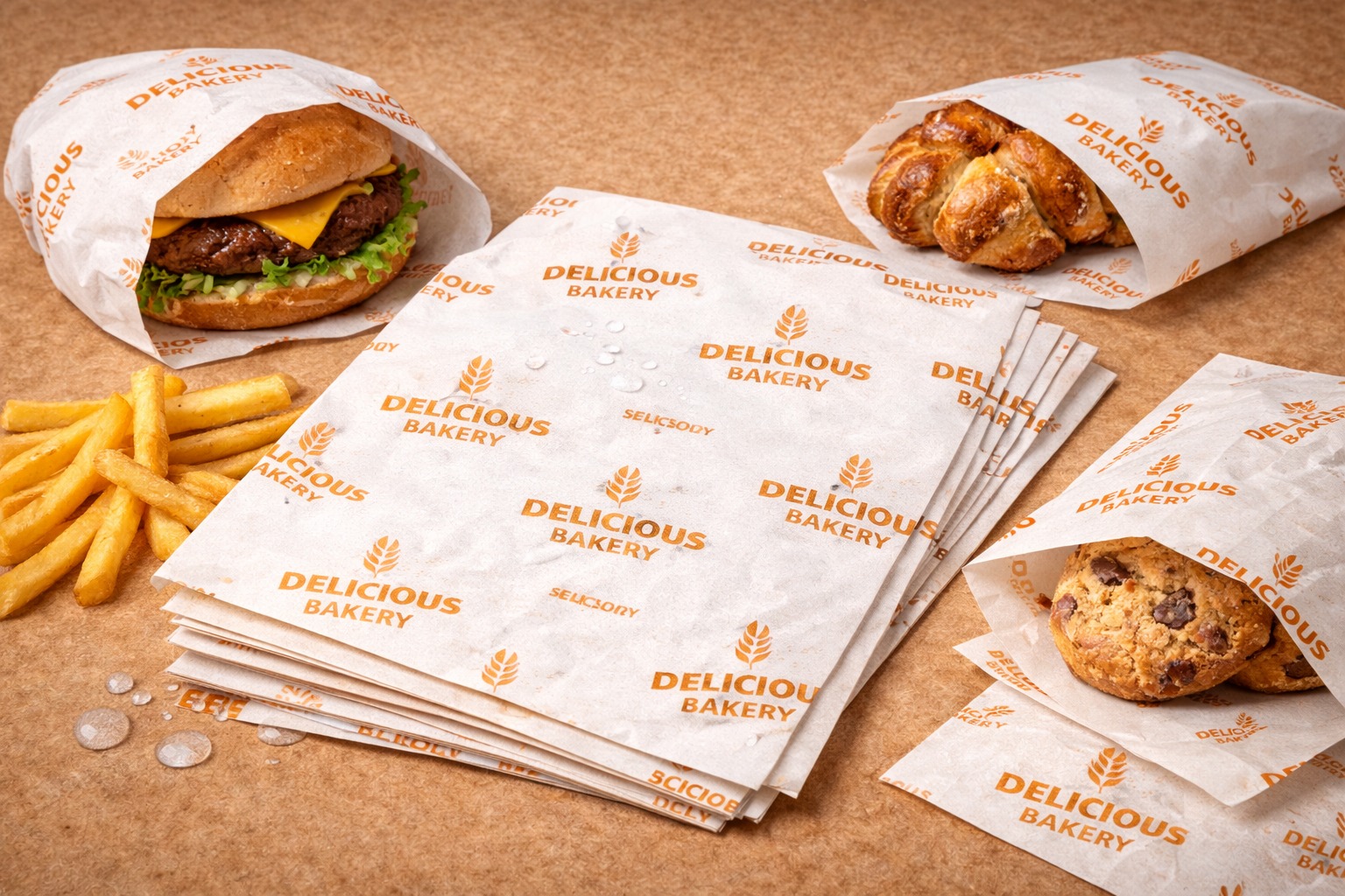 Branded wrappers using water-based inks. Safe for food and ideal for showcasing logos.